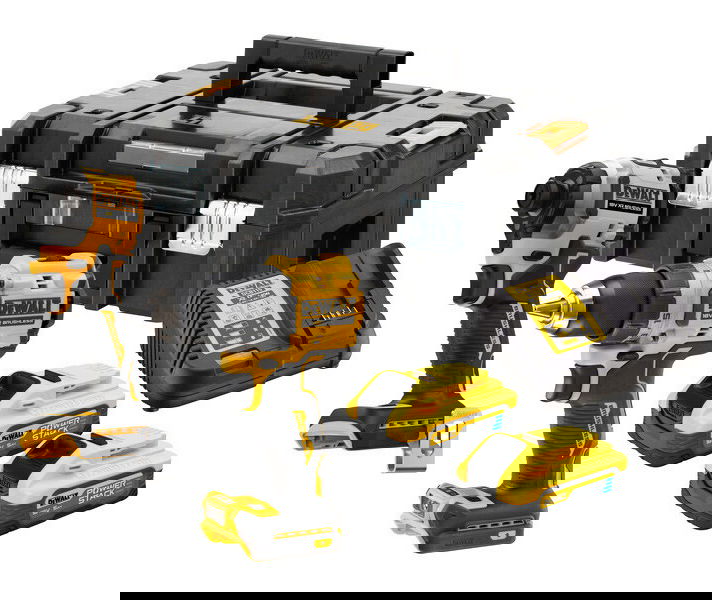 Dewalt DCK2051H2T akkus gépcsomag, 2 gépes (2 x 5.0 Ah Powerstack Li-ion akkuval, TSTAK kofferben)