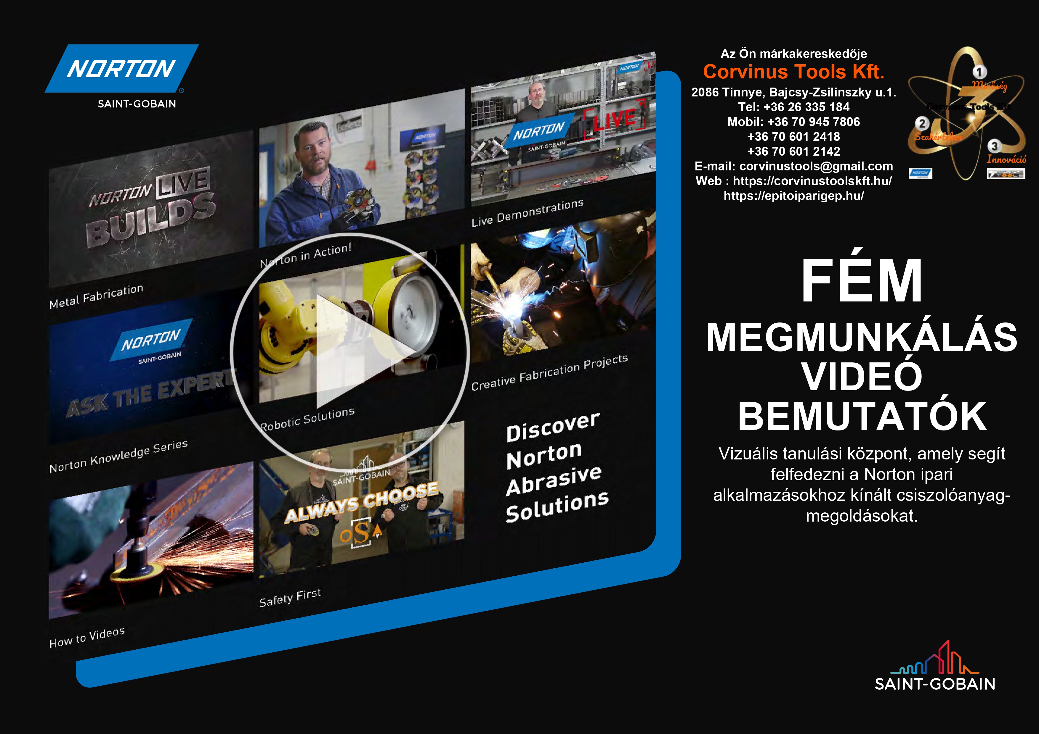 - Termékinformációk - A videókban bemutatott termékekről több információt, árakat megtalál a Corvinus Tools Kft webáruházában, ott rendelést is leadhat. Kattintson a videó címére, vagy a termékek-re.