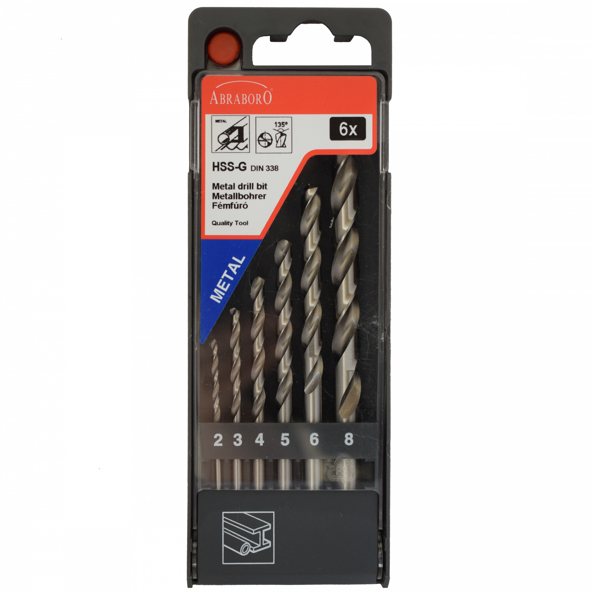 Abraboro HSS-GS 6 részes fémfúró készlet, műanyag dobozban
