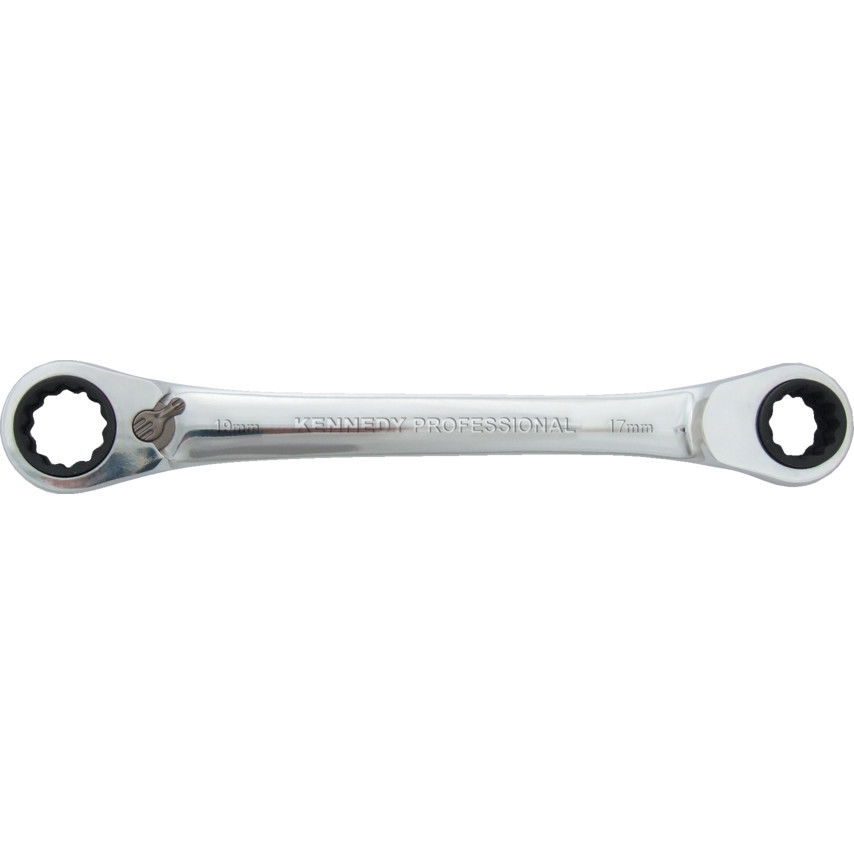 KENNEDY Négy az egyben kétvégű racsnis csavarkulcs, 16 mm - 19 mm
