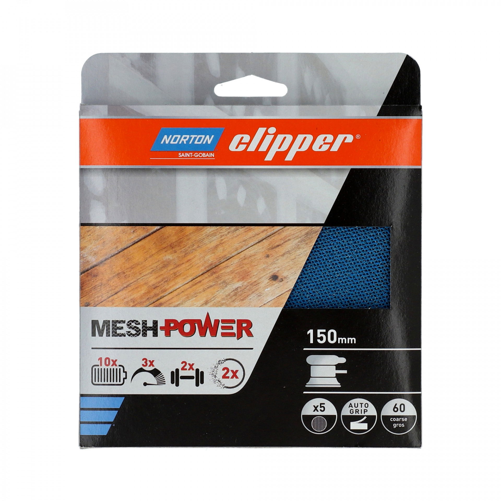 Norton Clipper MeshPower Ceramic tépőzáras csiszolóháló Ø150 mm P60, 5 db/csomag