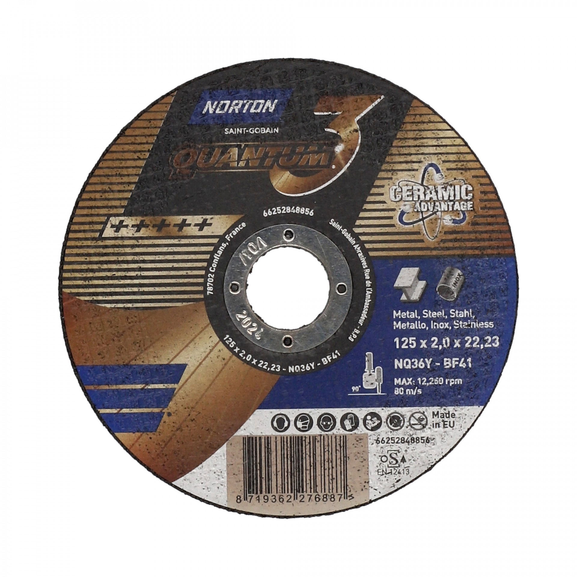 A Norton Quantum fém-inox vágókorong jellemzői a rendkívül gyors vágás, magas élettartam és kitűnő vágóképesség. Innovatív, kerámia vágókorongok. A legújabb fejlesztés, a legnagyobb sebesség és a legnagyobb kopásállóság a leghidegebb vágáshoz. Az innovatív Norton Quantum3 termékcsalád ultravékony kerámia vágókorongjai új szintre emelik a vágási teljesítményt a kényelem, az élettartam és a sebesség terén rendkívüli precizitással, gyorsasággal és pontossággal. A kerámia szemcsék adják ennek a korongnak egyedi karakterét, kategóriájában a legjobb teljesítményt nyújtva acélon és rozsdamentes acélon. Vágjon kevesebb rezgéssel, mivel a szuperéles kerámiaszemcsék alacsony nyomáson is folyamatosan dolgoznak, így a kezelő hosszabb ideig kényelmesebben vághat.